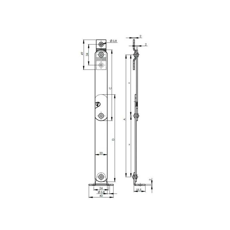 Compas d'arrêt AZ droit 300 x 20