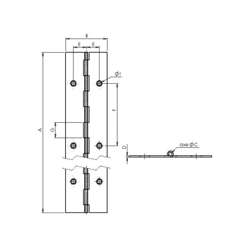 Charnière piano à nœud roulé inox p. f. 1980x40 mm