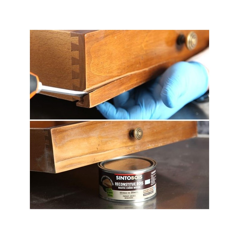 Mastic reconstitue bois angles et gros trous - Chêne