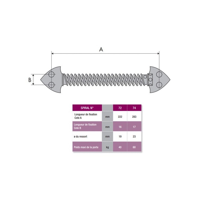 Ferme-porte à ressort SPIRAL n°72 Ø19 222 mm