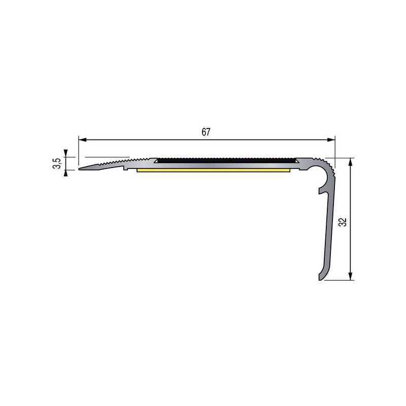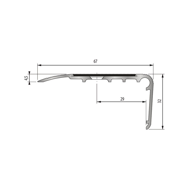 Conditionnement : 1 pièce(s), Trafic : Tertiaire, Matière : Aluminium, Hauteur : 32 mm, Mode de pose : À visser, Largeur : 67 mm, Longueur : 3 m, Application : Intérieur et extérieur, Finition : Anodisé naturel