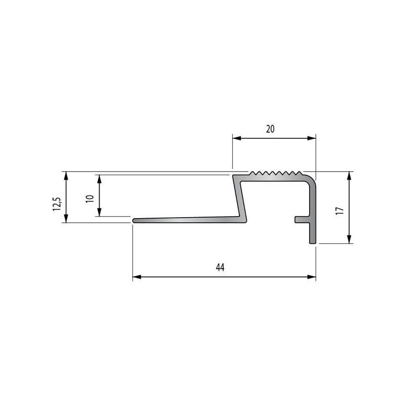 Nez de marche déco 60V alu brut 10/250